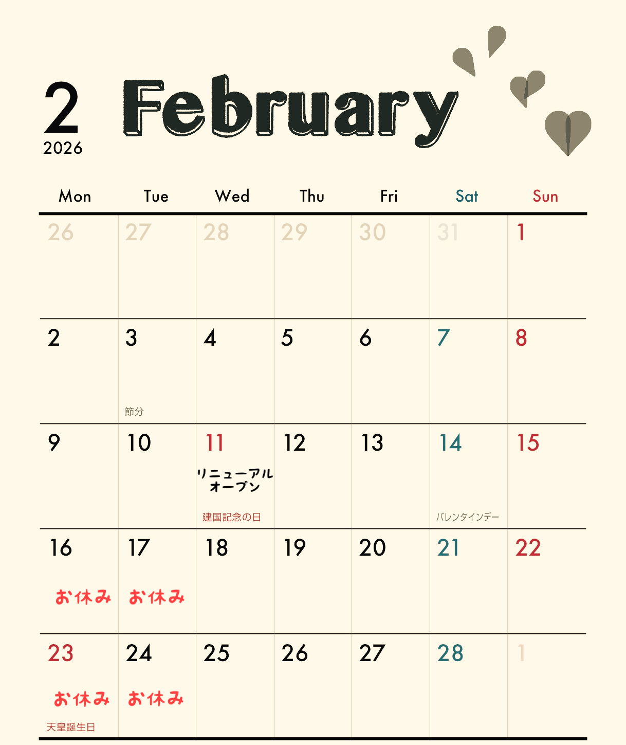 2月の営業日カレンダー✨